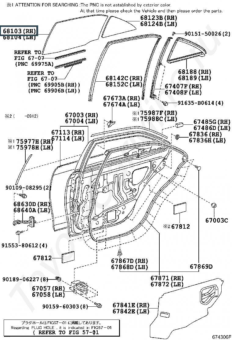 68113-33150, Стекло задней двери правое