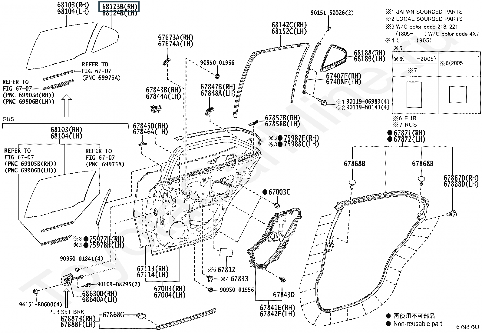 68123-06270, GLASS, REAR DOOR QUARTER WINDOW, RH