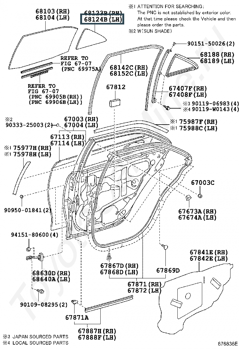 68124-33080, GLASS, REAR DOOR QUARTER WINDOW, LH
