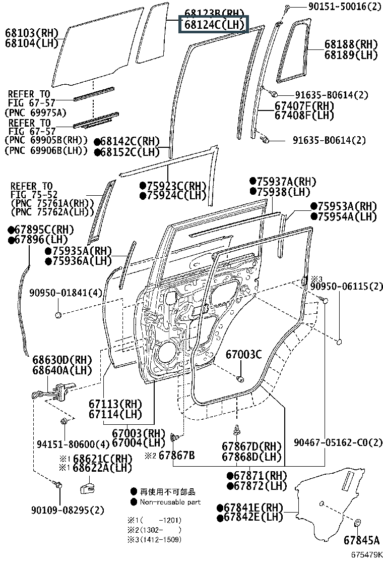 68124-60371, GLASS, REAR DOOR QUARTER WINDOW, LH