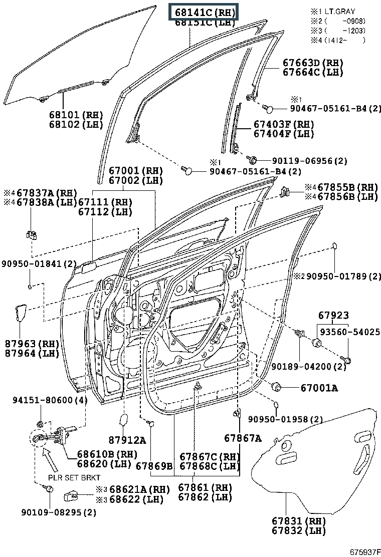 68141-48060, RUN, FRONT DOOR GLASS, RH