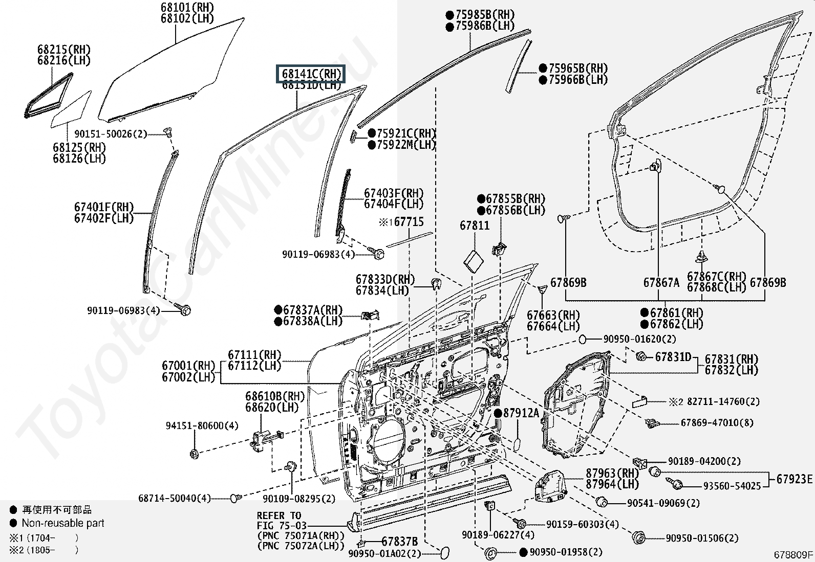 68141-48080, RUN, FRONT DOOR GLASS, RH