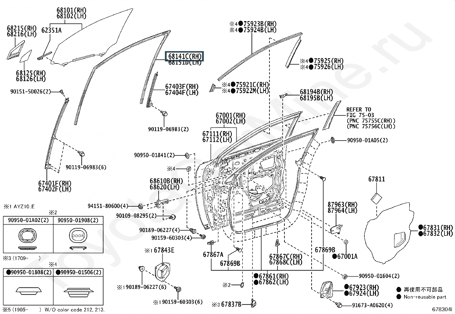 68141-78010, RUN, FRONT DOOR GLASS, RH