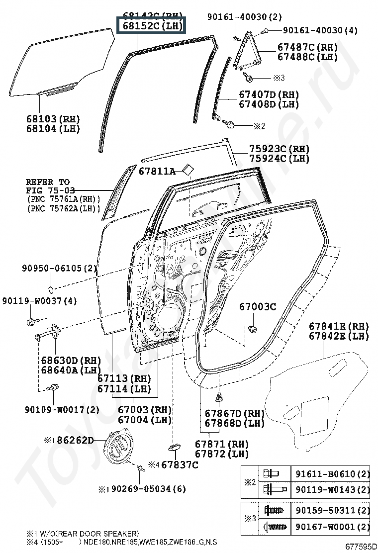 68152-02270, RUN, REAR DOOR GLASS, LH