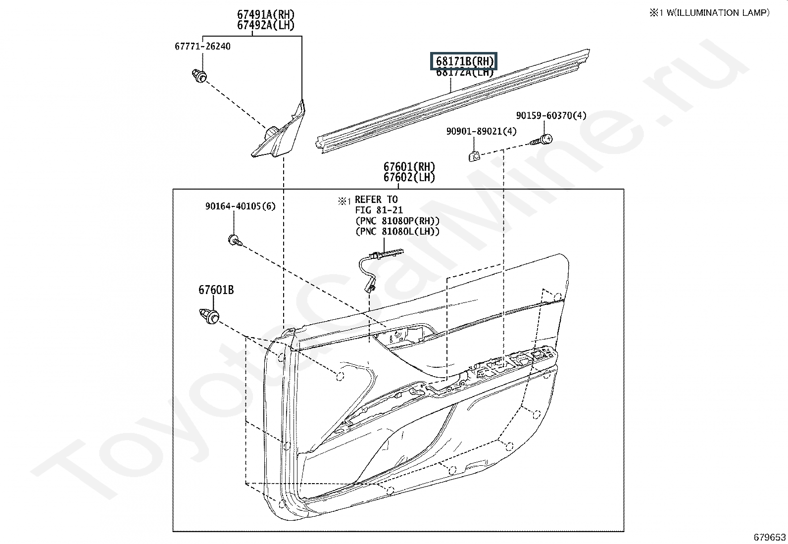 68171-33110, WEATHERSTRIP, FRONT DOOR GLASS, INNER RH