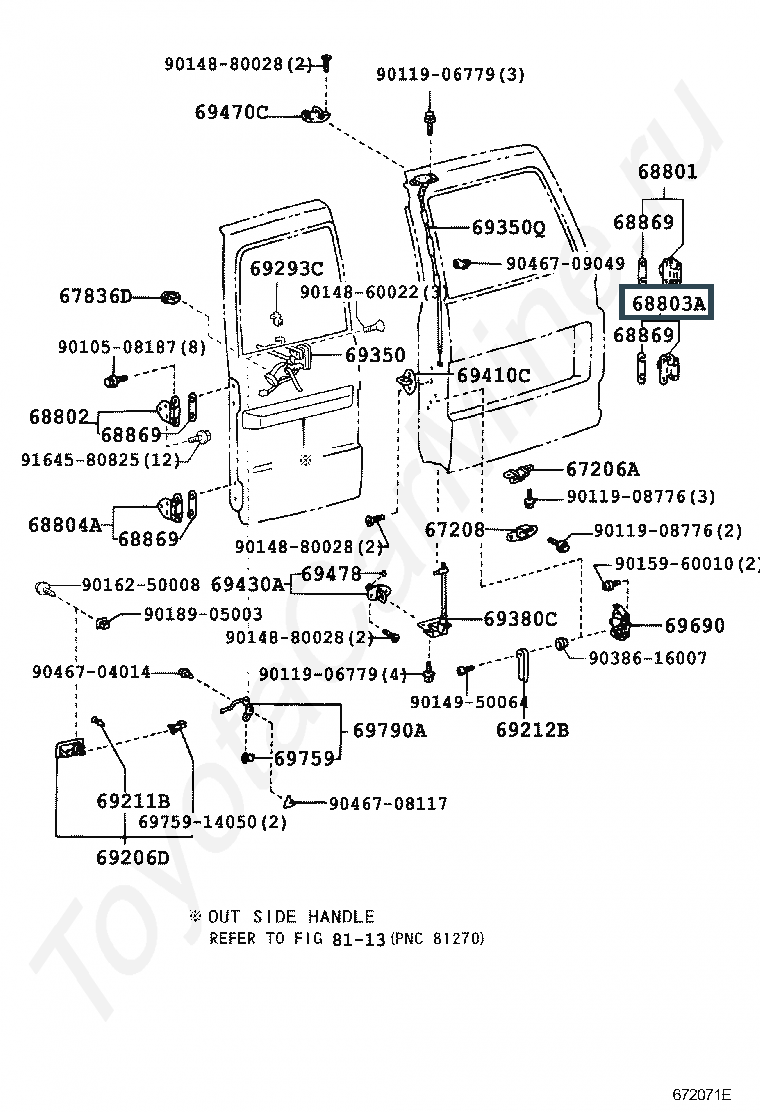 68803-60030, HINGE SUB-ASSY, BACK DOOR, LOWER RH