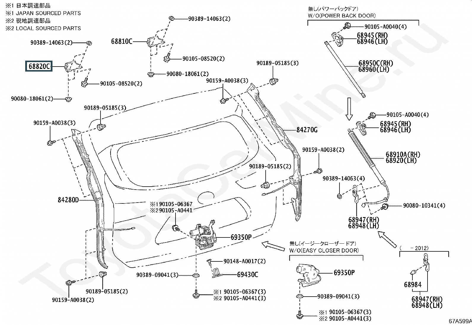 68820-0E240, HINGE ASSY, BACK DOOR, LH
