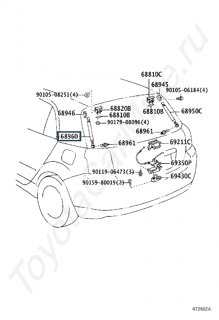 68960-02031, STAY ASSY, BACK DOOR, LH