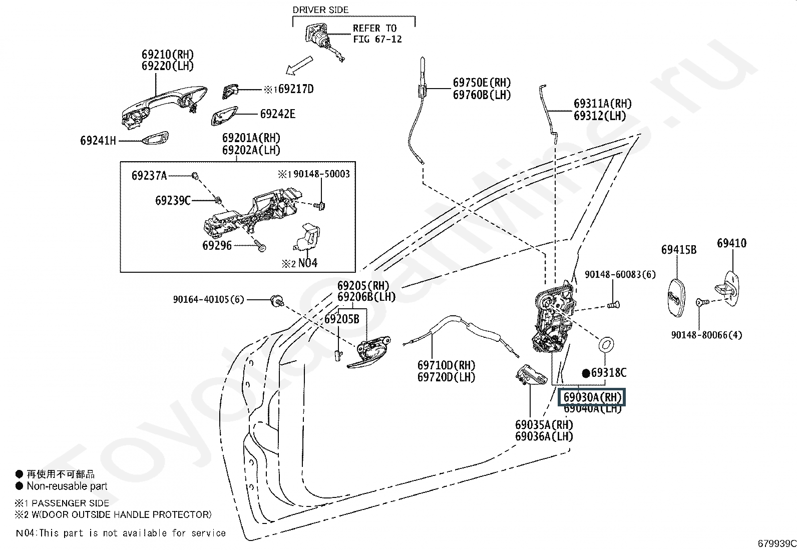 69030-48130, LOCK ASSY, FRONT DOOR W/MOTOR, RH