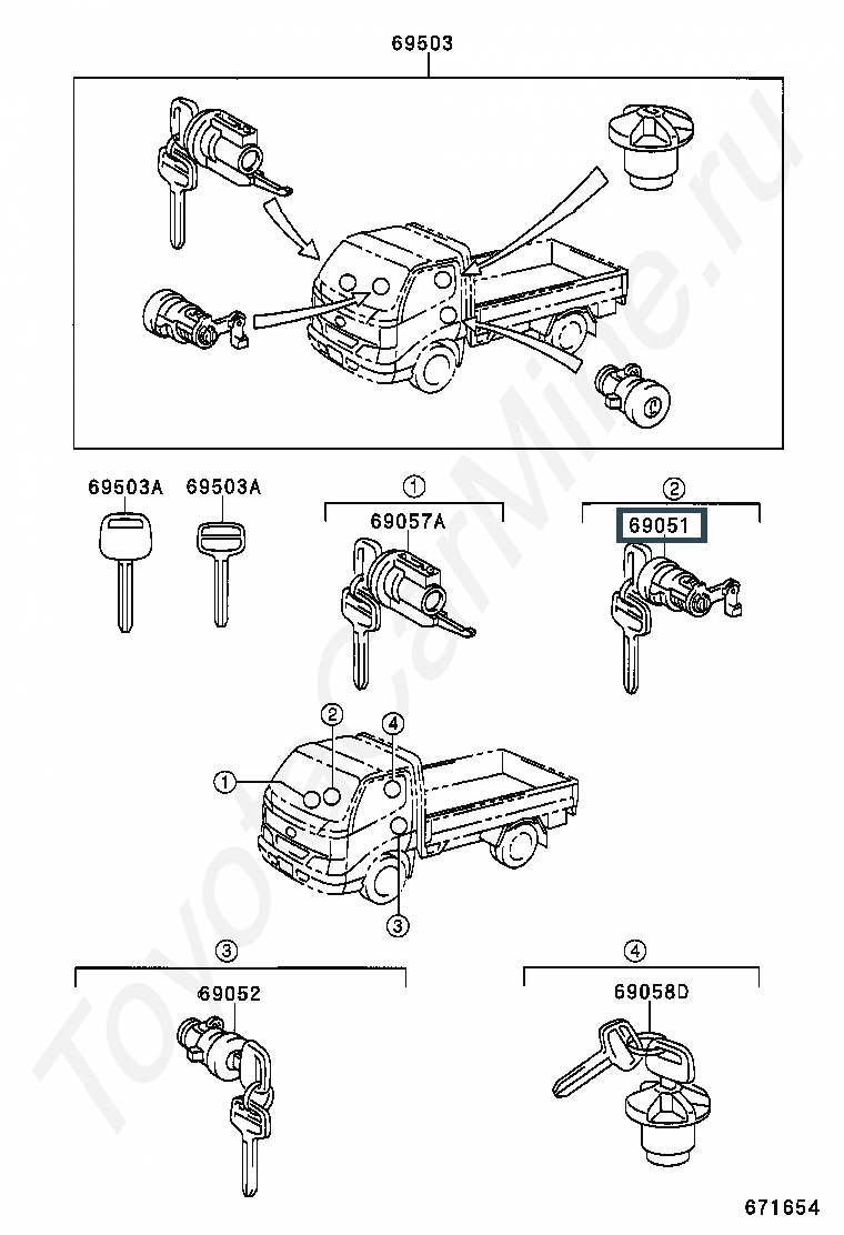 69051-37080, CYLINDER & KEY SET, DOOR LOCK, RH