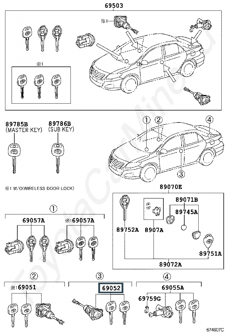 69052-21090, CYLINDER & KEY SET, DOOR LOCK, LH