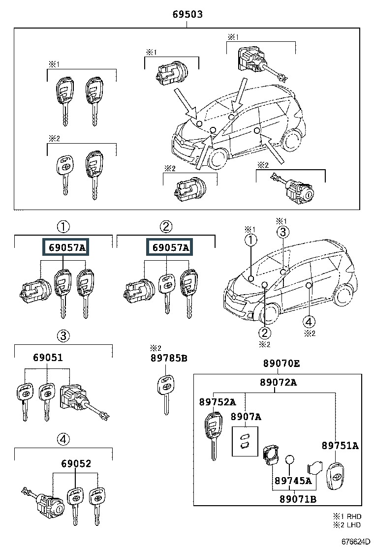 69057-42330, CYLINDER & KEY SET, IGNITION SWITCH LOCK