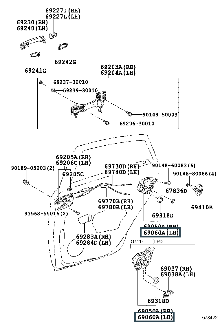 69060-48060, LOCK ASSY, REAR DOOR W/MOTOR, LH