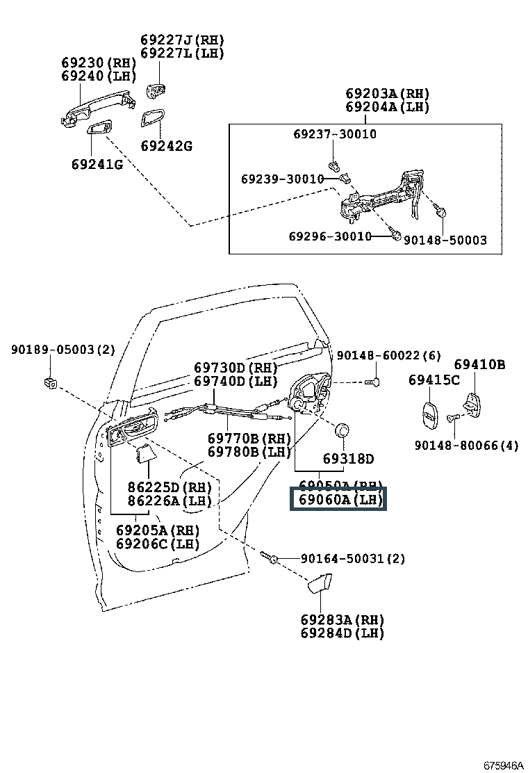 69060-60110, LOCK ASSY, REAR DOOR W/MOTOR, LH