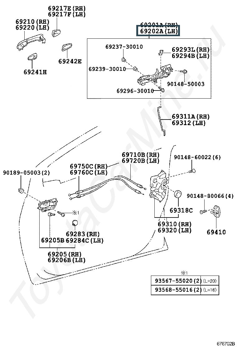 69202-52070, FRAME SUB-ASSY, FRONT DOOR OUTSIDE HANDLE, LH