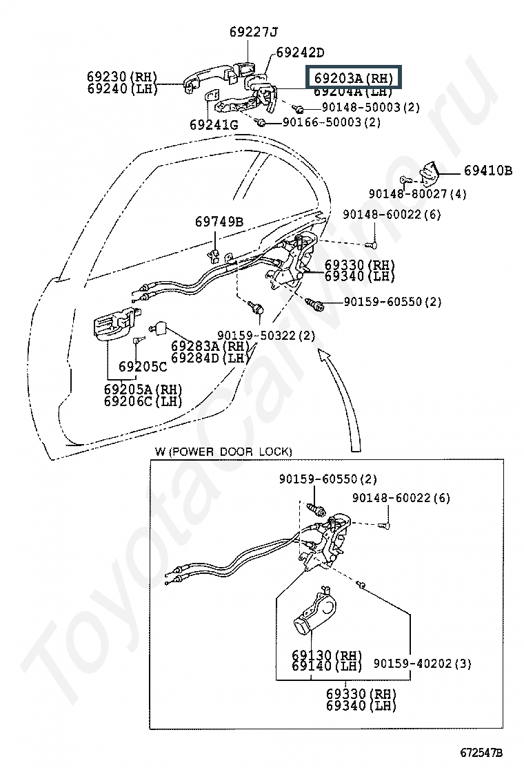 69203-12090, FRAME SUB-ASSY, REAR DOOR OUTSIDE HANDLE, RH