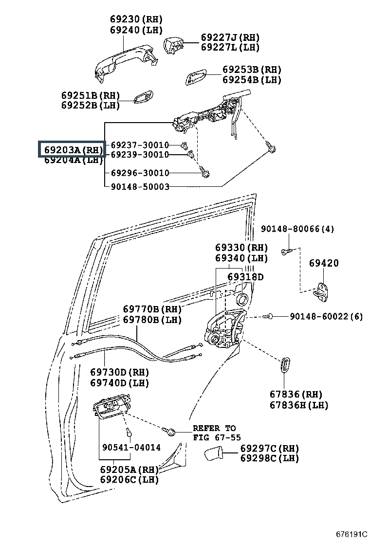 69203-60070, FRAME SUB-ASSY, REAR DOOR OUTSIDE HANDLE, RH