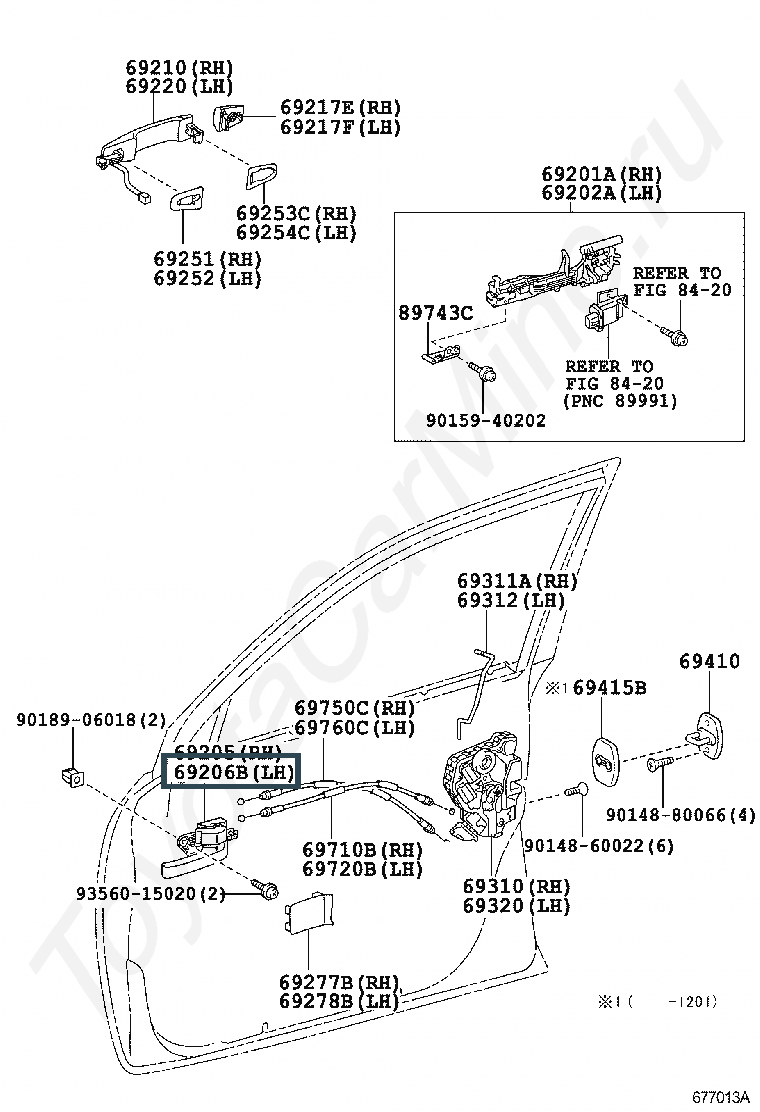 69206-60150, HANDLE SUB-ASSY, REAR DOOR INSIDE, LH
