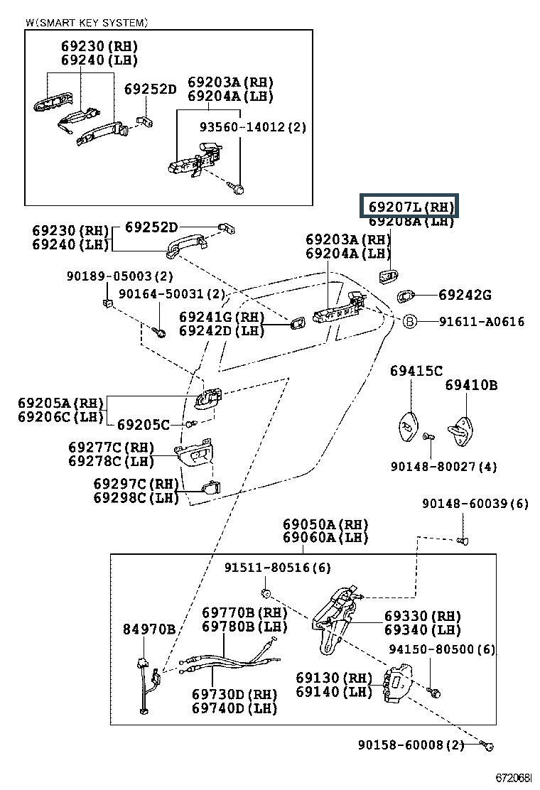 69207-50010-C0, PLUG SUB-ASSY, REAR DOOR OUTSIDE HANDLE, RH