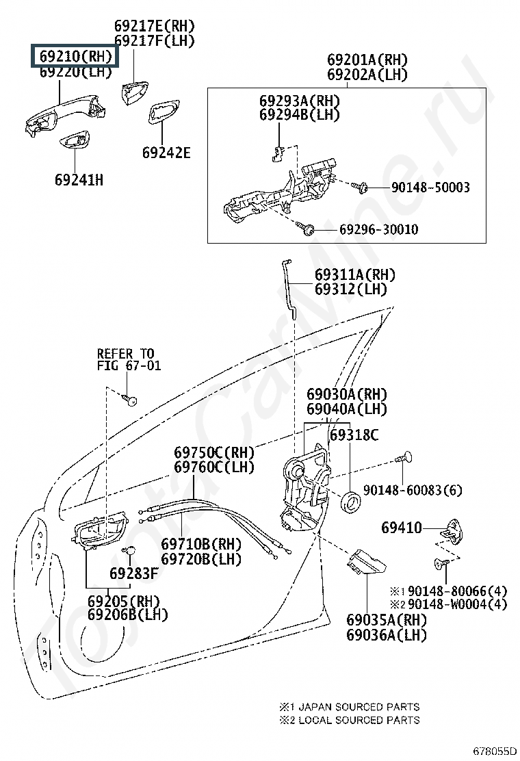 69210-02160-B3, HANDLE ASSY, FRONT DOOR, OUTSIDE RH