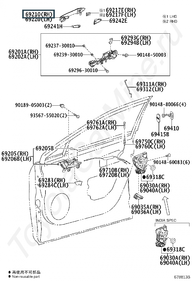 69210-48140-A1, HANDLE ASSY, REAR DOOR OUTSIDE, RH