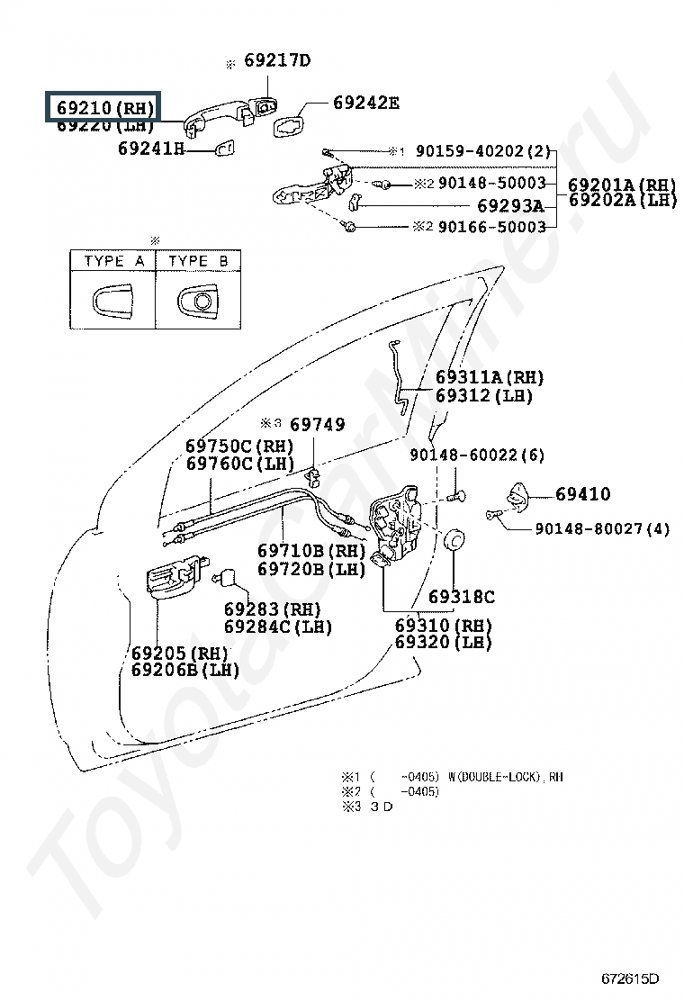 69211-05903, HANDLE ASSY, REAR DOOR OUTSIDE, LH