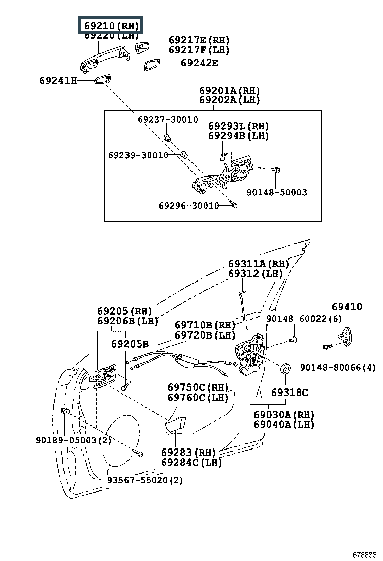 69211-52100-E2, HANDLE ASSY, REAR DOOR OUTSIDE, LH