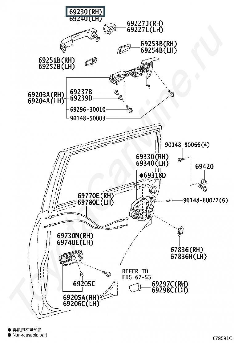 69211-60090-E5, HANDLE ASSY, REAR DOOR OUTSIDE, LH