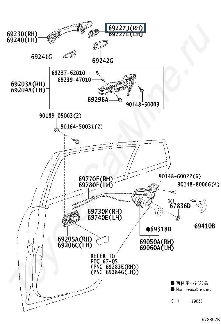 69227-47020, COVER, REAR DOOR OUTSIDE HANDLE, LH