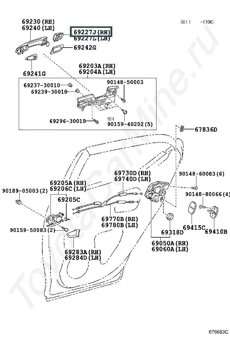 69227-48010-D4, COVER, REAR DOOR OUTSIDE HANDLE, RH