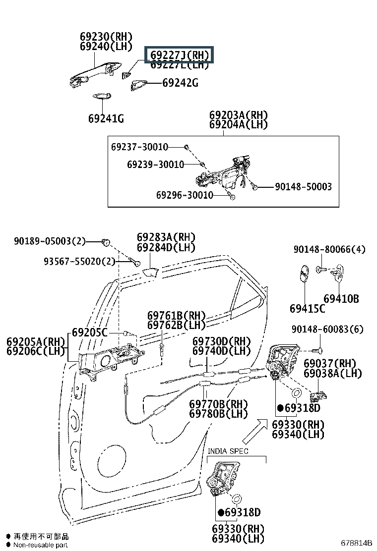69227-78010, COVER, REAR DOOR OUTSIDE HANDLE, RH