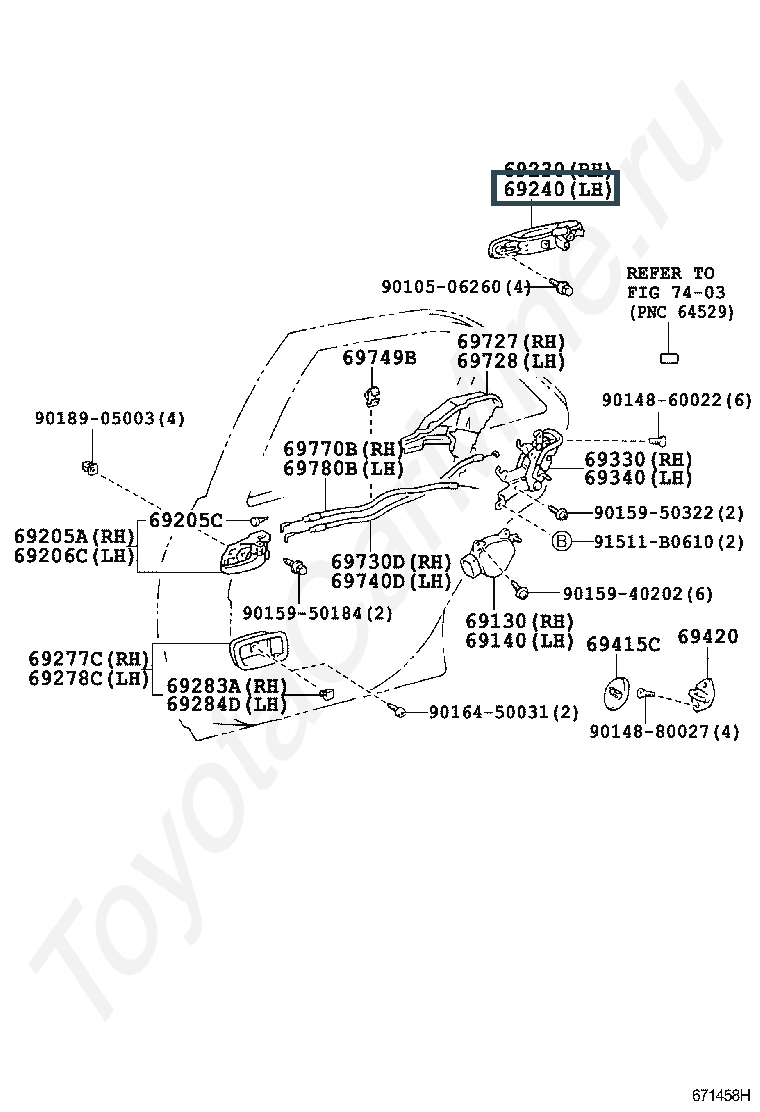 69240-53010-D0, HANDLE ASSY, REAR DOOR OUTSIDE, LH
