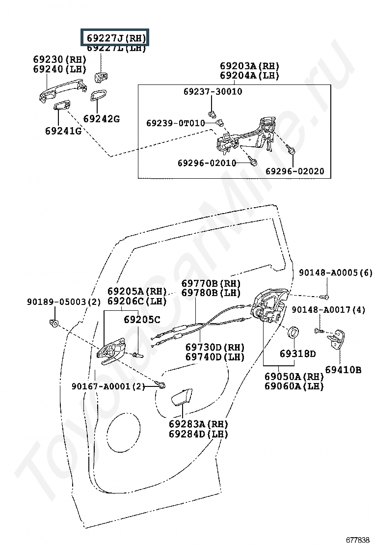 69250-0T020-B1, COVER, REAR DOOR OUTSIDE HANDLE, LH