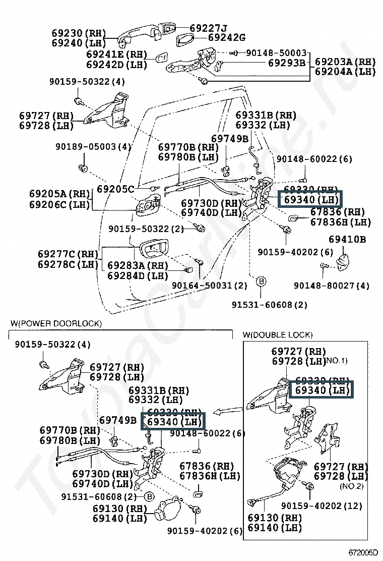 69340-42060, LOCK ASSY, REAR DOOR, LH