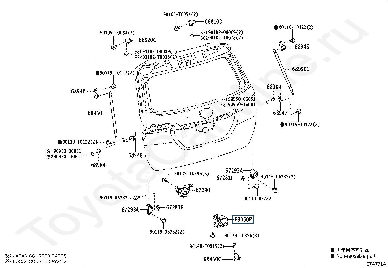 69350-0K190, LOCK ASSY, BACK DOOR, W/COURTESY LAMP SWITCH