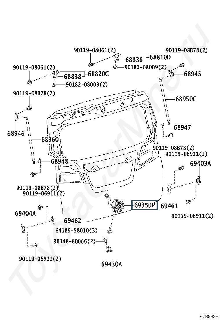 69350-58030, LOCK ASSY, BACK DOOR, W/COURTESY LAMP SWITCH