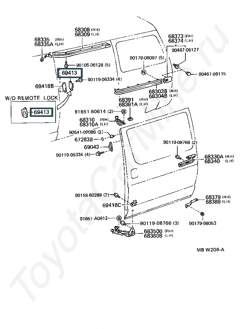69416-95J01, STOP, SLIDE DOOR DOWN MALE