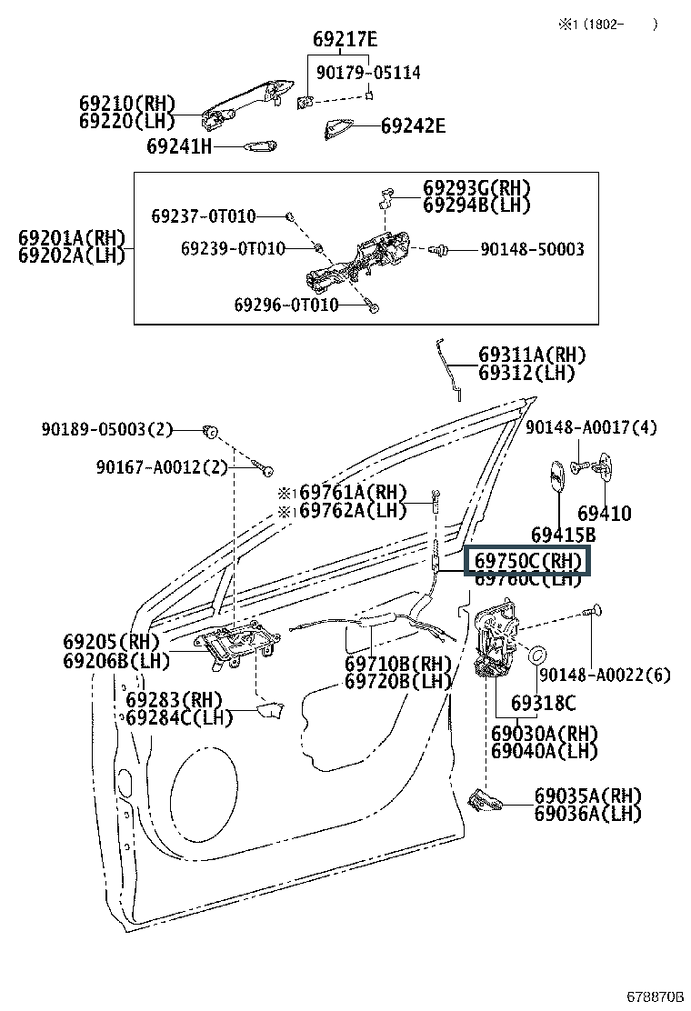 69750-48091, CABLE ASSY, FRONT DOOR INSIDE LOCKING LH