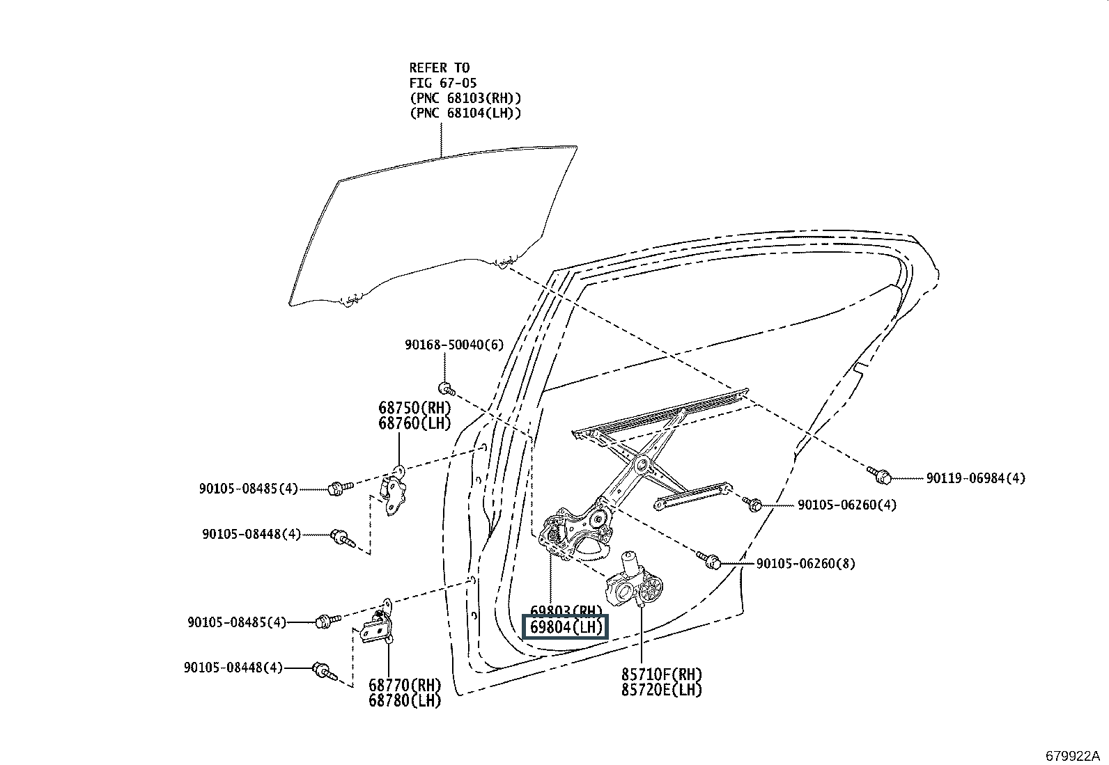 69802-78010, REGULATOR SUB-ASSY, REAR DOOR WINDOW, LH