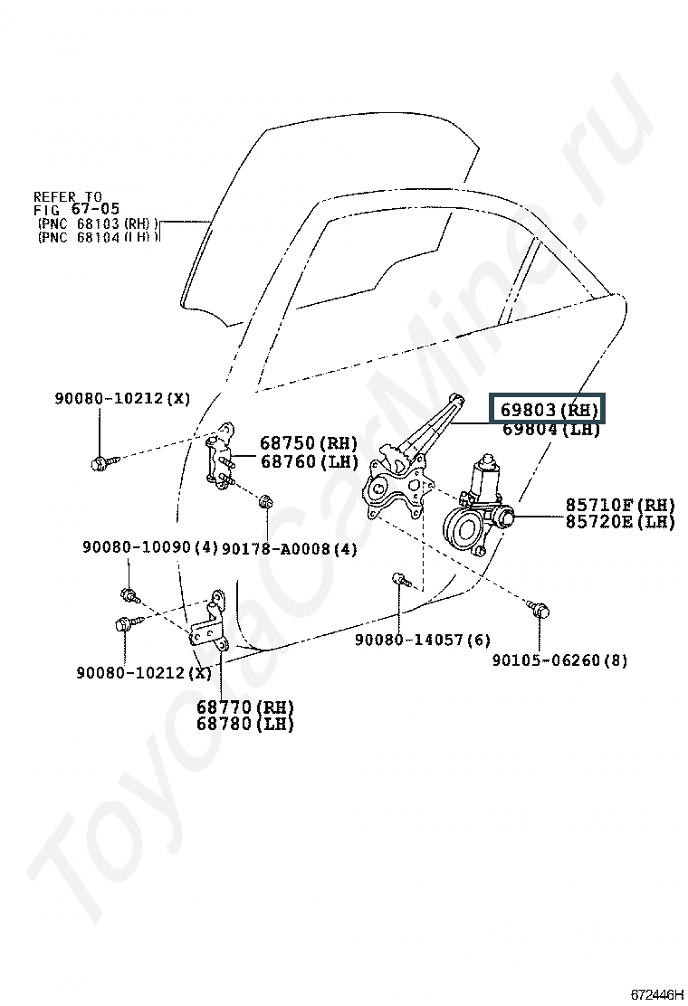 69803-AA020, REGULATOR SUB-ASSY, REAR DOOR WINDOW, RH