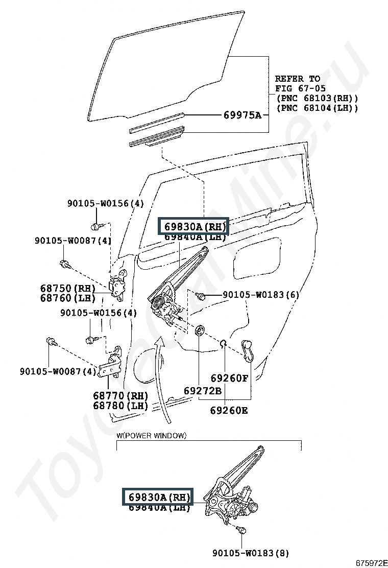 69830-0F030, REGULATOR ASSY, REAR DOOR WINDOW, RH