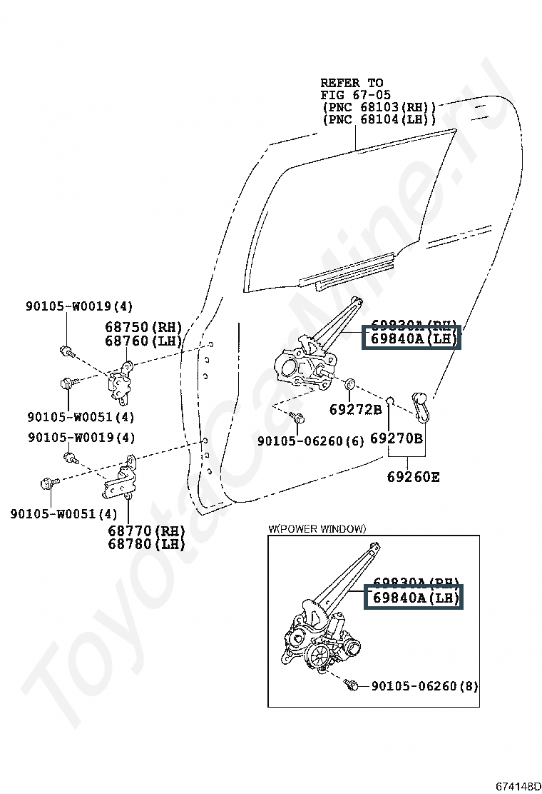 69840-02240, REGULATOR ASSY, REAR DOOR WINDOW, LH