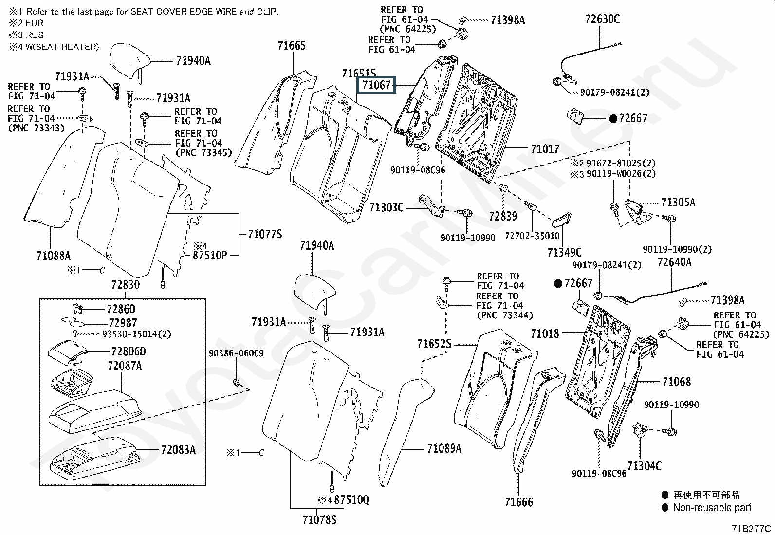 71067-06070, FRAME SUB-ASSY, REAR SIDE SEAT BACK, RH