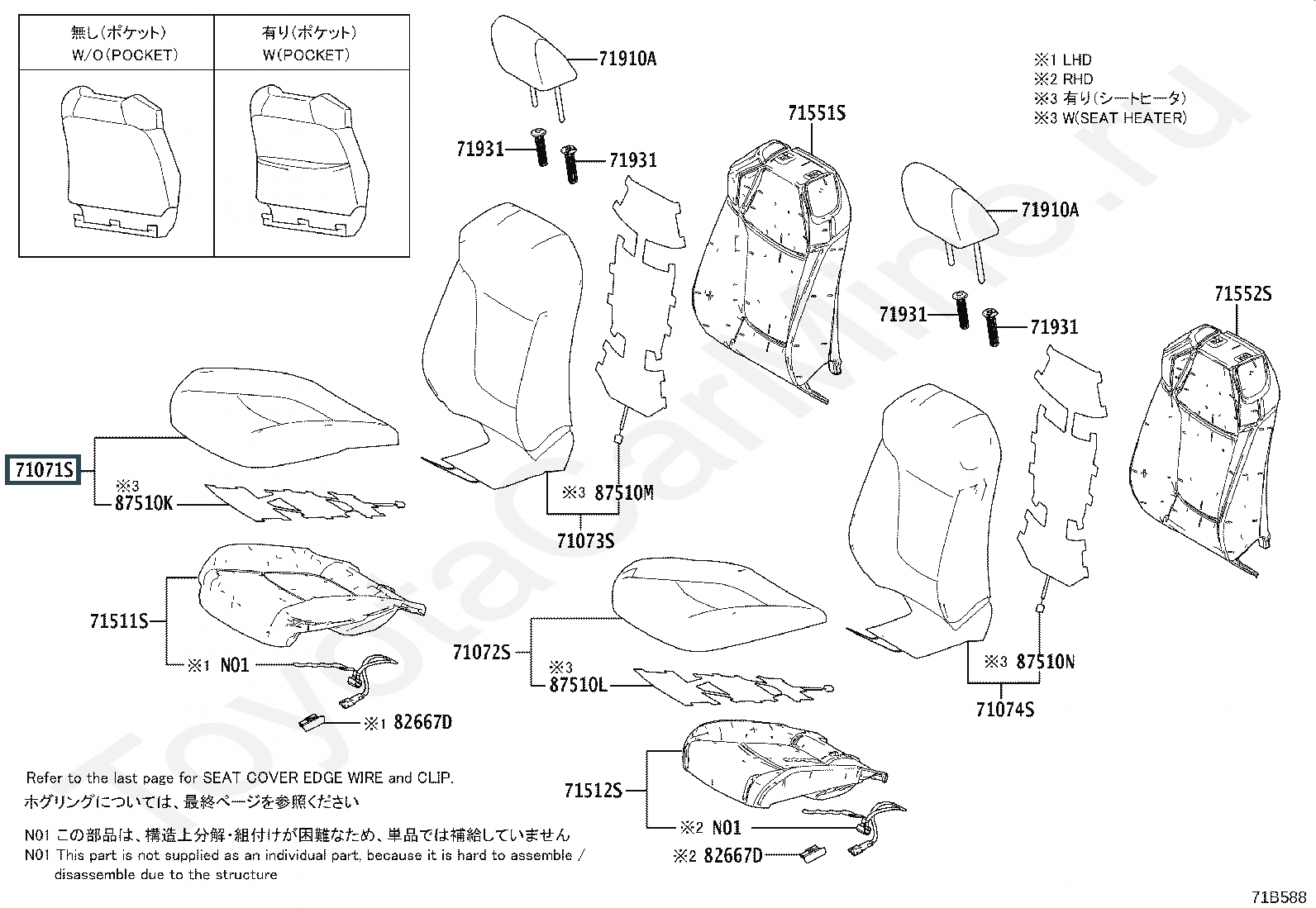 71071-0R380-C1, COVER, FRONT SEAT CUSHION, RH(FOR SEPARATE TYPE)