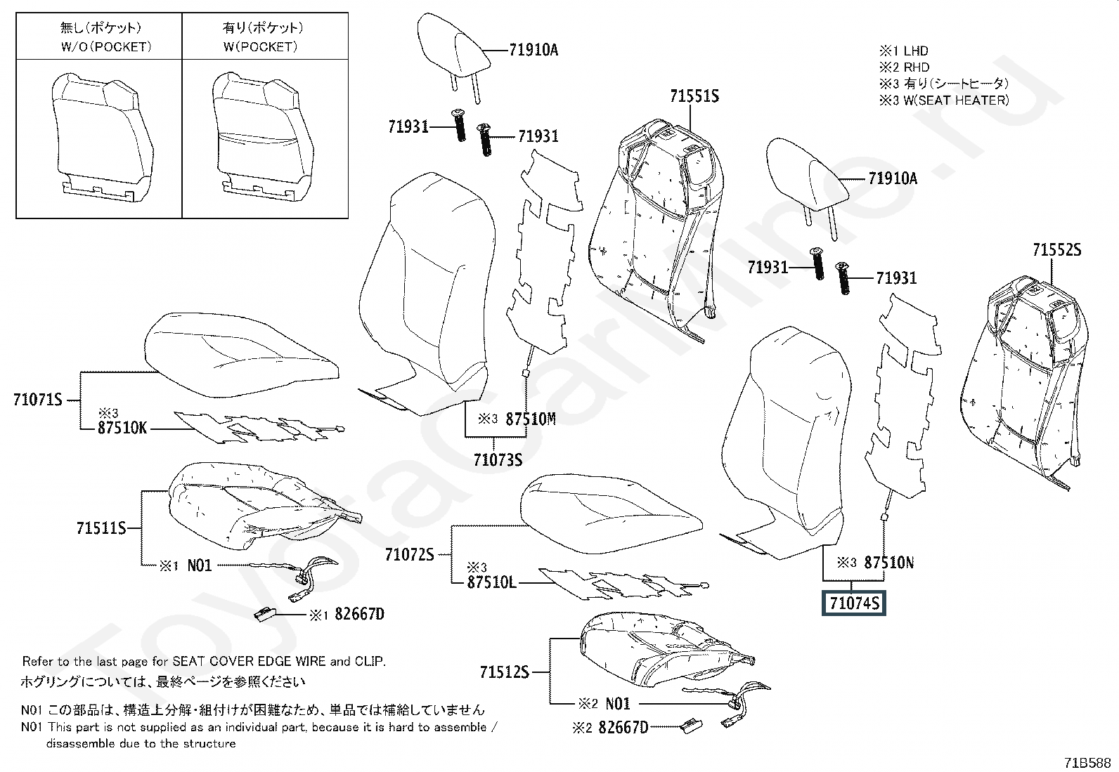 71074-0R460-C1, COVER, FRONT SEAT BACK, LH(FOR SEPARATE TYPE)