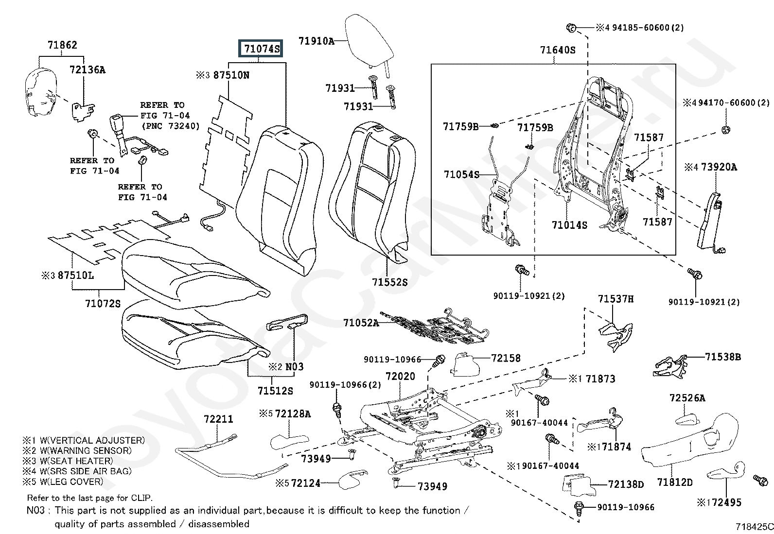 71074-0ZE00-C3, COVER, FRONT SEAT BACK, LH(FOR SEPARATE TYPE)