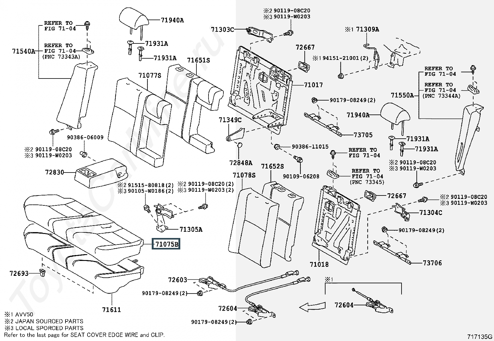 71075-06E10-C2, COVER, REAR SEAT CUSHION (FOR BENCH TYPE)