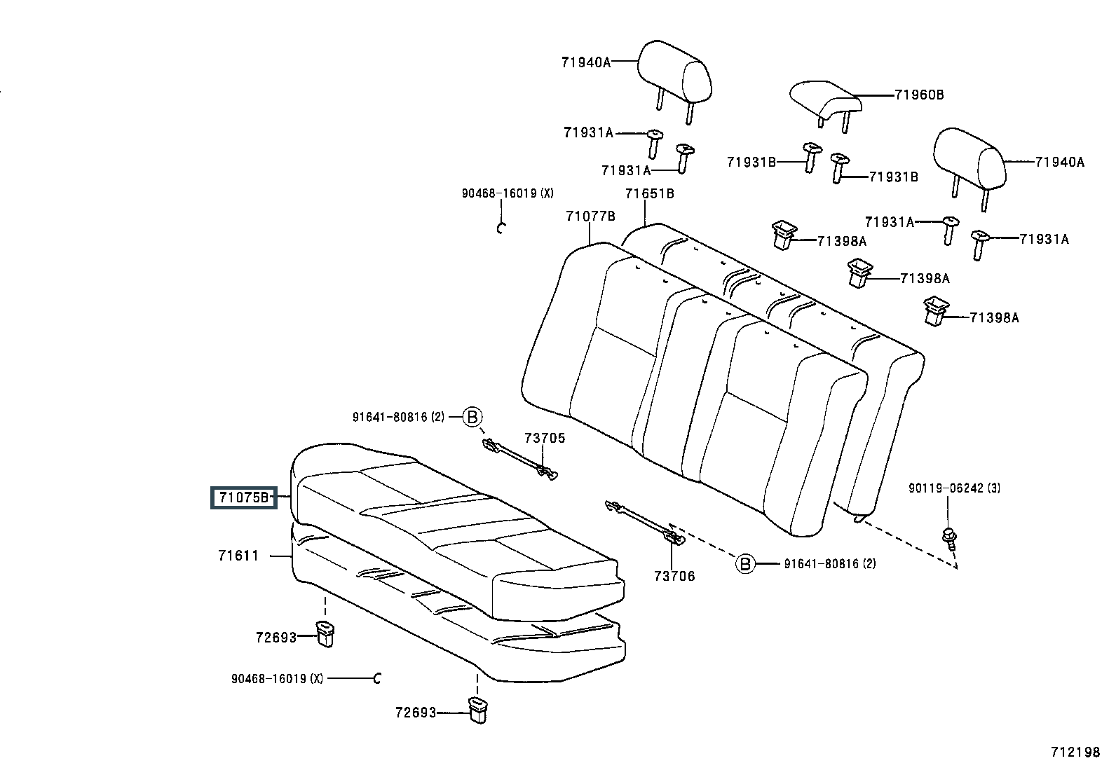 71075-1H180-B2, COVER, REAR SEAT CUSHION (FOR BENCH TYPE)