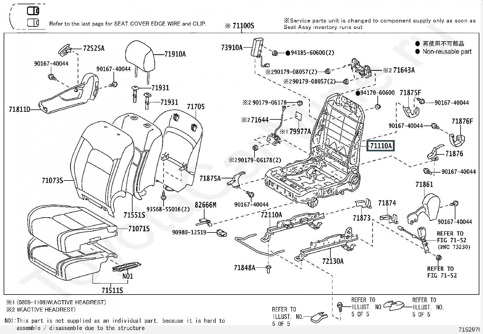 71110-60571, FRAME ASSY, FRONT SEAT W/ADJUSTER, RH