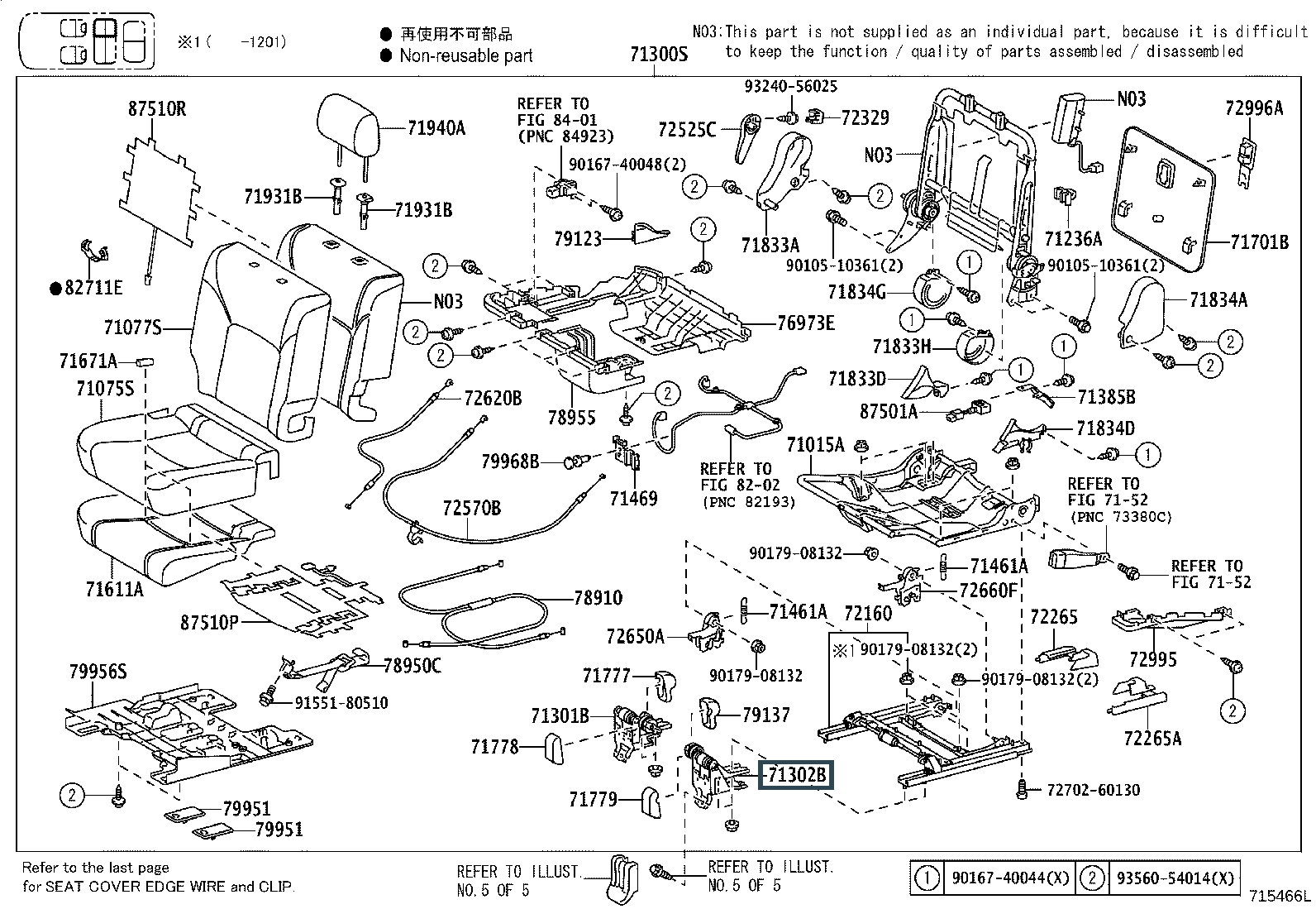 71302-60140, HINGE SUB-ASSY, REAR NO.1 SEAT, LH